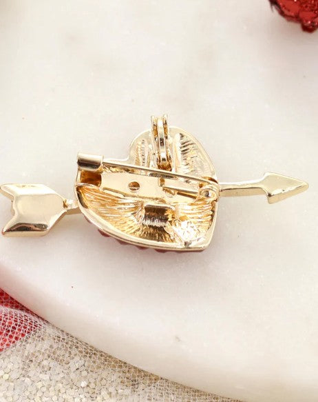 Crystal Heart with Arrow Pendant/Pin on 3-Strand Gold Chain